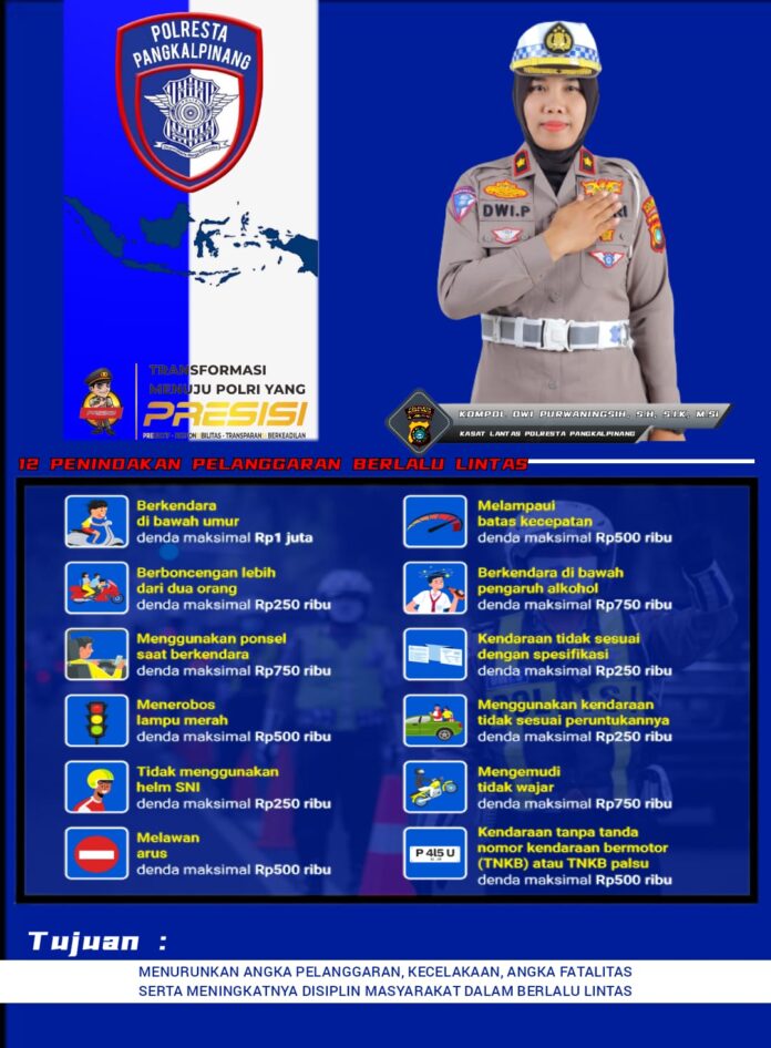 Humas Polresta Pangkalpinang. Id – Satuan lalu lantas Polresta Pangkalpinang akan menggelar Operasi Zebra Menumbing 2024 selama 14 hari, mulai Senin 14-27 Oktober 2024. Dengan mengedepankan 12 Pelanggaran Lalu Lintas. Senin (14/10)”.