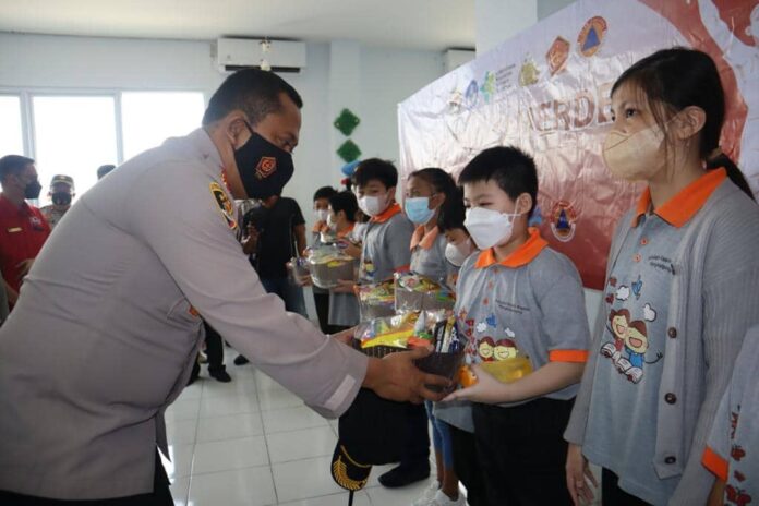 Humas Polres Pangkalpinang – Kapolres Pangkalpinang AKBP Dwi Budi Murtiono, S,IK ,M.H bersama Satuan Tugas Percepatan Vaksinasi Covid 19 Kota Pangkalpinang meninjau pelaksanaan Vaksinasi Merdeka Anak yang dilakukan di Sekolah Dasar Kasih Baptist Kelurahan Batu Intan Kecamatan Girimaya Kota Pangkalpinang. Jumat (14/22).