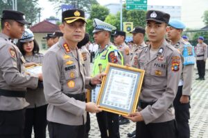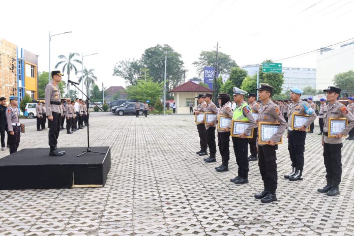 Humas Polresta Pangkalpinang Id – Kapolres ta Pangkalpinang KOMBES POL Gatot Yulianto, S. I. K M. HP, pimpin Upacara Pemberian Penghargaan Kepada 9 (sembilan) personel Polresta Pangkalpinang yang menjadi operator Quick Wins Presisi tahun 2022 – 2023. Senin (17 /7).