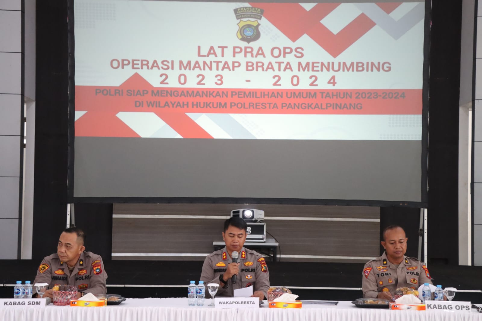 Pelatihan Pra Operasi (latpraops) ini diadakan dalam rangka pengamanan Pemilu serentak Tahun 2024 di wilayah hukum Polresta Pangkalpinang.