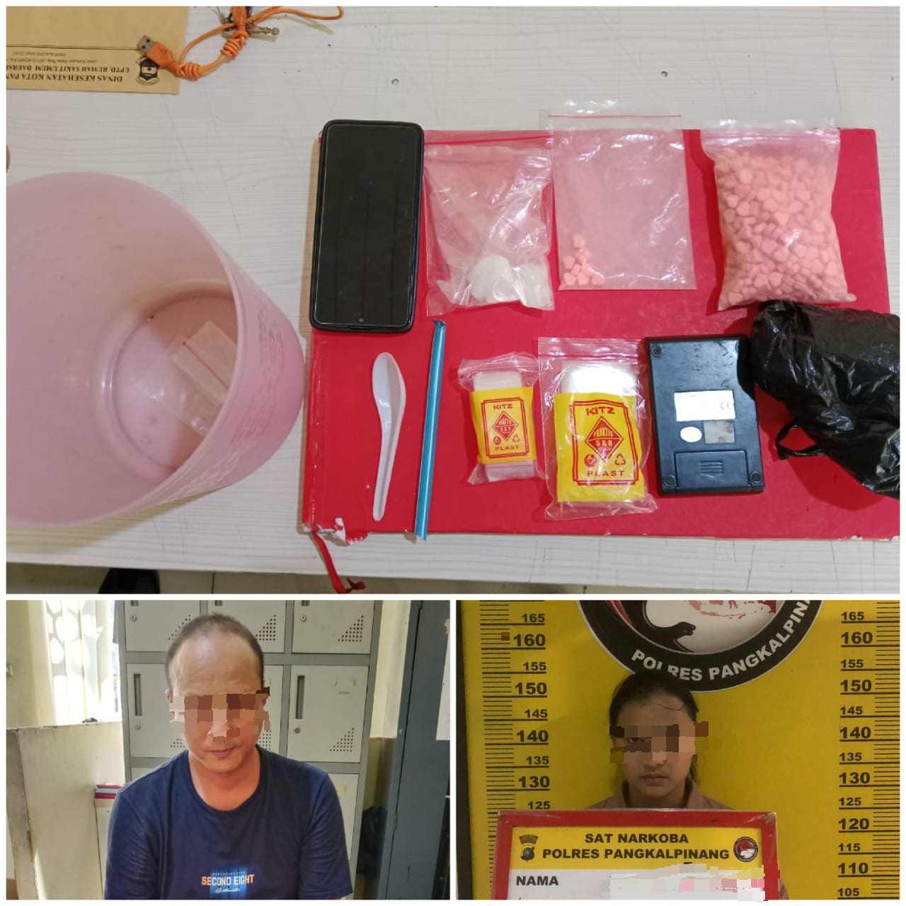 Tim Satresnarkoba Polresta Pangkalpinang berhasil mengamankan dua orang pelaku penyalahgunaan narkotika H als Datuk (39) dan NM als Nia (30), setelah adanya laporan masyarakat dan hasil dari pengembangan pihak Kepolisian dikarenakan menyimpan narkotika jenis extacy dan sabu.
