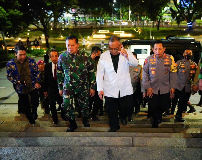 Jakarta – Kapolri Jenderal Listyo Sigit Prabowo dan Panglima TNI Laksamana Yudo Margono meninjau Gereja GPIB Immanuel dan Katedral, Jakarta di malam Natal. Hal itu dilakukan demi memastikan pengamanan dan penjagaan demi menciptakan rasa aman dan nyaman kepada masyarakat.