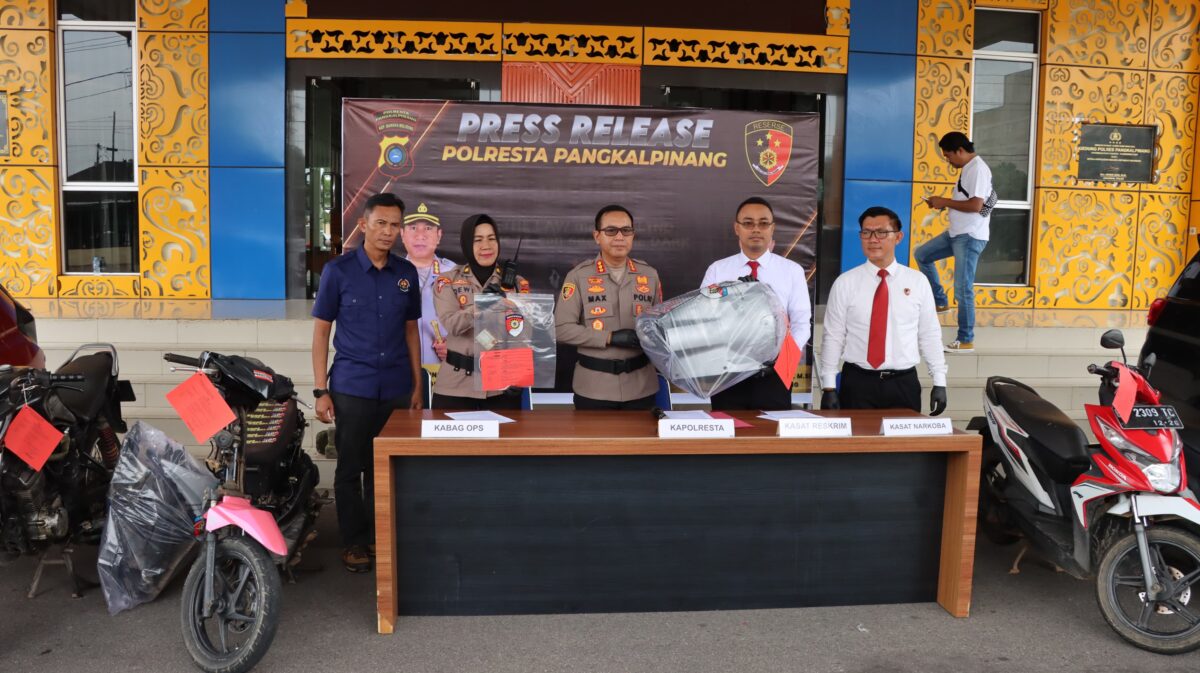 Dalam keterangannya, Kapolresta menyampaikan bahwa jajaran Polresta Pangkalpinang berhasil mengungkap dua kasus curanmor dengan total tiga TKP yang melibatkan beberapa pelaku.