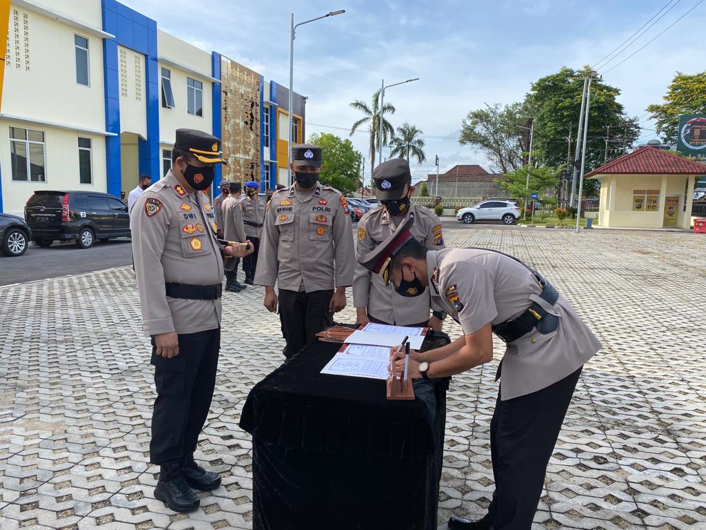 Upacara serah-terima jabatan (sertijab) digelar di Halaman Mapolres Pangkalpinang siang ini, jumat (22/4). Upacara dipimpin langsung oleh Kapolres Pangkalpinang AKBP Dwi Budi Murtiono, S.IK M,H.