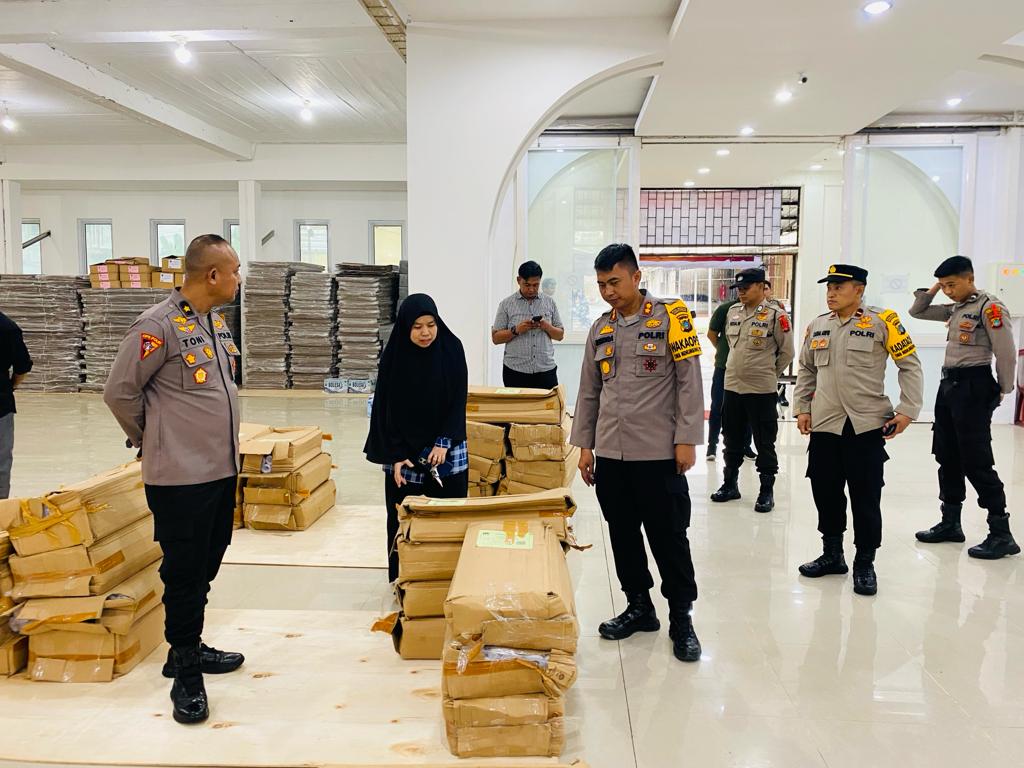 Humas Polresta Pangkalpinang Id – Wakapolresta Pangkalpinang AKBP Rendra Oktha Dinata, S.IK M.Si, melakukan pengecekan Gudang logistik KPU di jalan terminal Girimaya Kecamatan Giri Maya Kota Pangkalpinang. Sabtu (23/12).