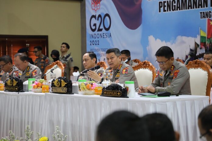 Wakapolri Komjen Pol Gatot Eddy Pramono memimpin kegiatan tactical floor game (TFG) untuk menyusun taktik dan strategi yang akan diterapkan pelaksanaan pengamanan KTT G20 di Bali. Kegiatan TFG ini dilaksanakan di Gedung Perkasa Raga Garwita, Polda Bali, Kamis, (27/10/2022).